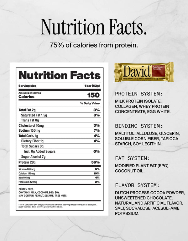 David Bar Fudge Brownie (12pk) provides a flavorful, high-protein snack tailored to enhance your active lifestyle. Each bar combines wholesome ingredients with a rich fudge brownie taste, delivering sustained energy and muscle support. Conveniently packed in a 12-count box, these bars are ideal for quick nutrition, workout recovery, or a satisfying treat at any time. Expertly formulated to offer premium protein without compromising on taste, they assist in achieving your fitness goals with every bite.